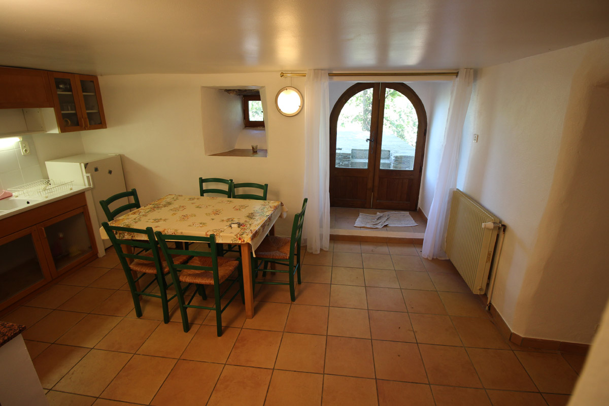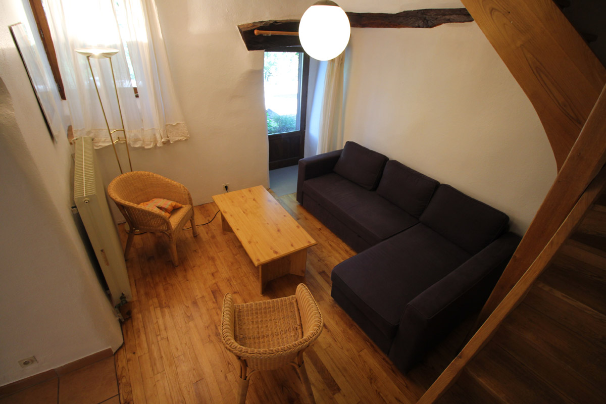 Die Infirmerie ist eine Ferienwohnung mit Essküche und einem Wohnraum mit Sofa und Sessel. Das Sofa kann zum Schlafen in ein Doppelbett verwandelt werden. Im ersten Stock findet sich ein Schlafraum mit einem Kleiderschrank, einer Kommode und einem Doppelbett. Im hinteren Teil der Wohnung gibt es ein großes Badezimmer mit Dusche, Waschtisch und Badewanne und einer separaten Toilette. Vor dem Haus liegt eine große Terrasse mit Gartenmöbeln, unter der das Chambre de Bassin liegt. Das Bassin liegt unterhalb dieses Zimmers. Die Infirmerie bietet Übernachtungsmöglichkeiten für eine Familie mit zwei Kindern oder für zwei Paare. Falls das Chambre de Bassin mitgemietet ist, können ein drittes Paar oder zwei Kinder dort übernachten.