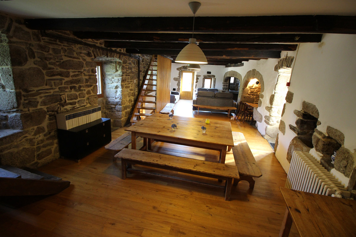 Das Maison des Pierre ist mit 10 Übernachtungsmöglichkeiten in 5 Zimmern das größte Haus der SCI Bedajo. Es gibt zudem einen großen Wohn- und Essraum und eine Küche mit einem großen Herd. Im Wohnraum befindet sich ein offener Kamin. Ein Sanitärtrakt mit vier Duschen, vier Wachbecken und drei Toiletten liegt im Souterrain. Vor dem Haus liegt eine große Terrasse mit Blick auf den Mont Lozère, einem großen Esstisch und Gartenstühlen. Das Bassin liegt in einer Wiese unterhalb.